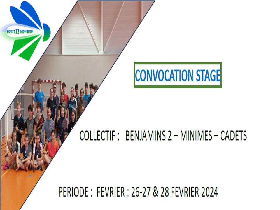 Sélection Stage Benjamins 2 - Minimes et Cadets - Février 2024