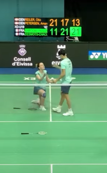 Le 3eme était une formalité et remporté facilement par Kathell et Thibault 21-13 pour être sacré champion d’Europe junior en double mixte.